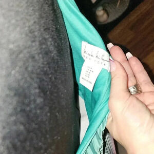 Nicole by Nicole Miller Blue, Pink, and Green Asymmetrical Ruffled Sheath Dress