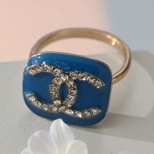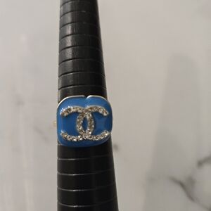 Stylish lux ring with blue enamel. Features iconic crystal logo. Adds luxury to any look.