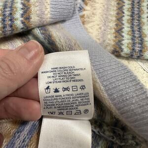 Wrap yourself in luxury with this Lands’ End 100% cashmere cardigan in a soft blue and beige Fair Isle pattern. This cozy knit features a classic button-front design and timeless winter styling. Made from ultra-soft cashmere, it’s perfect for layering during chilly seasons or adding a touch of elegance to your everyday wardrobe.