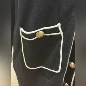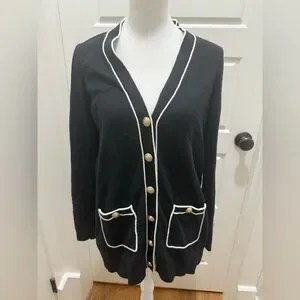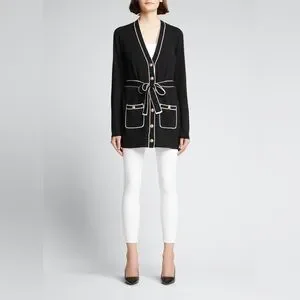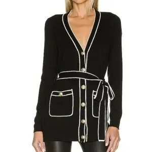 L'AGENCE. Black & White Ronny Piped Wool and Cotton Cardigan. Size Medium.