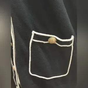 gold buttons and contrasting piping for a tailored design. Front patch pockets