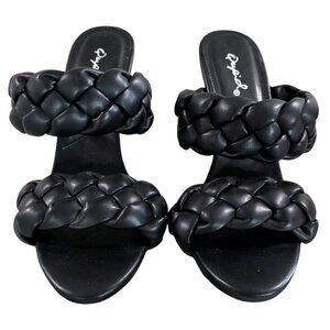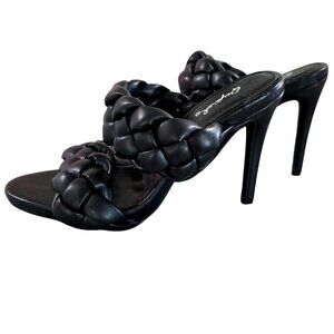 Qupid Womens Black Braided High Heel Sandals 3.5" Heels 8" Length Sz 8