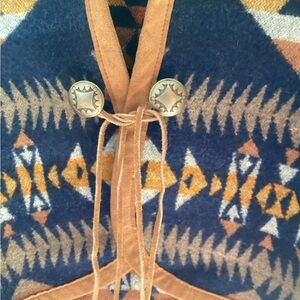 Pendelton Aztec Blue Pattern Southwestern Vest Leather Trim L