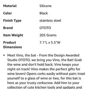 OTOTO Vino Bat Corkscrew and Bottle Opener. Wine -Halloween party - accessory