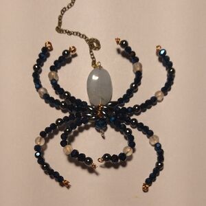 Add a touch of whimsy to your home with this beaded spider ornament. Featuring intricate blue and white beads, it's a unique decorative piece.