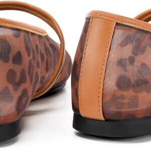 Features: Classic square-toe Mary Jane style with a fun leopard print pattern that adds a fierce touch to any look. Made with breathable mesh on top and a comfy latex insole, perfect for all-day wear. The buckle detail gives a vintage vibe, making these flats versatile enough for dressing up or down.