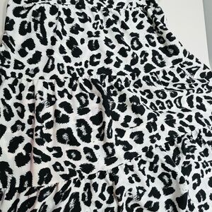Bold animal print design. Long sleeves for versatile wear. Skirt portion has 3 gathered layers. Lightweight polyester. Perfect for stylish outings.