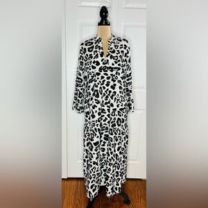 Sunday Up Black and White Animal Print Long Sleeve Dress