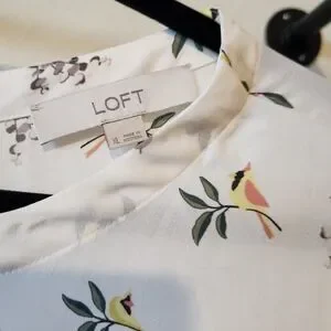LOFT White Blouse with Floral Bird Pattern