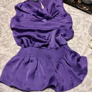 💜🪻💜 Sultry Rich Amethyst Purple Grape Silky Satin Cinch Waist Drape Neck Camisole Tank Top