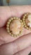 Vintage Hand Carved Shell & Faux Pearl Cameo Screwback Earrings Prong Set