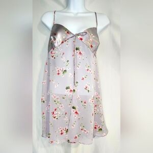 Victoria's Secret Womens Camisole Size M Purple Floral Satin Sheer Coquette
