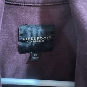 Stylish purple jean jacket by Liverpool. Perfect for casual outings. Comfortable and trendy.