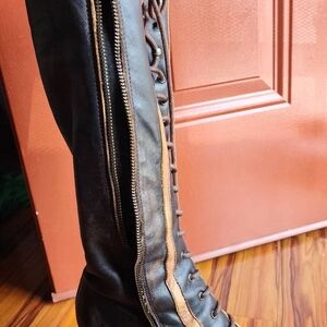 Extreemly Rare vintage soft leather Bold lace-up with zipper design. Striking black and tan contrast. Perfect for a stylish look.