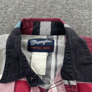 Vintage Wrangle X Long Tails Button Shirt Mens 34 16 1/2 Plaid Western Rodeo