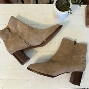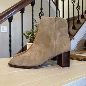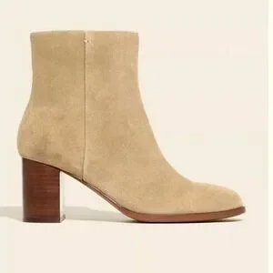 Madewell Women's Suede Ankle Boots, Side Zip, Stacked Heel, Neutral Tan Size 12