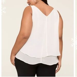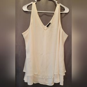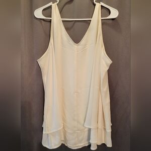 In excellent, like new condition. Elegant light cream colored layered tank top. Sleeveless design. Perfect for casual or dressy occasions. Woman's size 20, approximately equivalent to a 2X. Flowy layered design. 100% polyester.