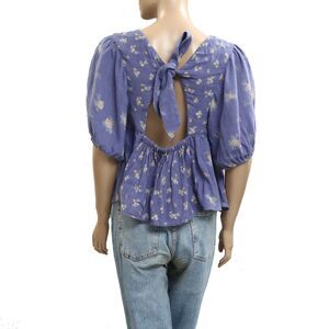 Free People Chloe Printed Blouse Top Rose Cutout Floral Cotton S NEW 281537