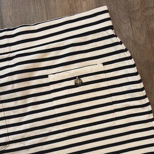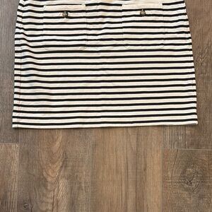 J. Crew Women’s M Black Cream Striped Pencil Mini Skirt Button Pocket Elastic