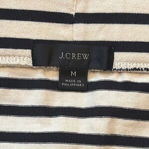 This J. Crew mini skirt features a classic black and white stripe pattern in a pencil style, ideal for work settings. Its structured fabric ensures a sleek silhouette, while the mini length adds a modern touch. The skirt's versatile design makes it a staple piece for any wardrobe.