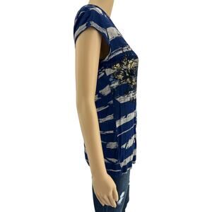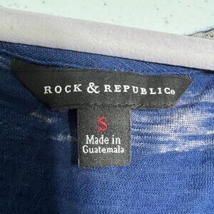 Rock & Republic SMALL Blue Gray Gold Rose Foil Metallic Print Burnout Tee Shirt