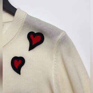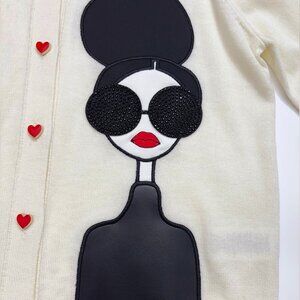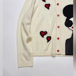 This cardigan features the brand's signature illustration, Stacy Face. The heart-shaped motif creates a lively atmosphere. Made of a lightweight wool blend, it's perfect as an outerwear piece for the transitional seasons.