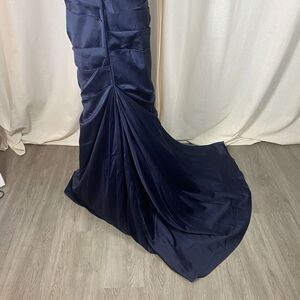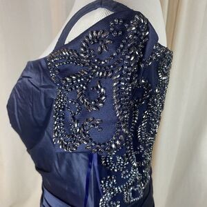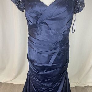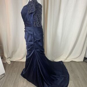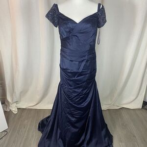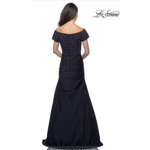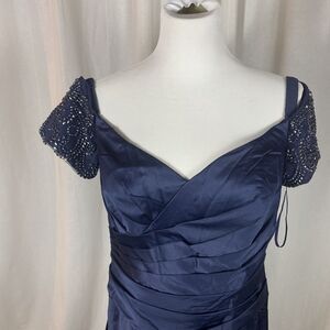 La Femme Size 12 Off the Shoulder Beaded Satin Trumpet Gown 25996 Blue Elegant