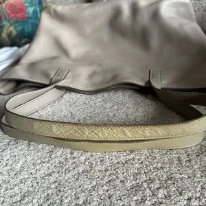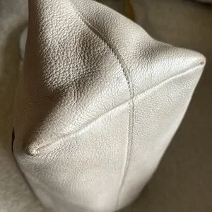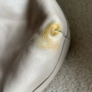 Has stain on corner of bag, minor scratches throughout, scuffs on hardware, stain on strap all shown on pictures, no rips good used condition, spots on inside fabric , nothing major