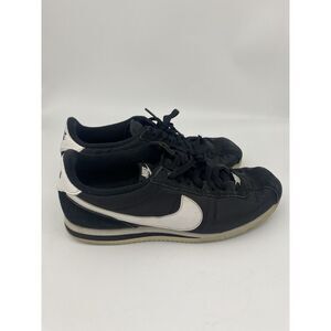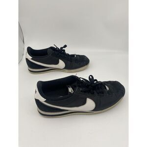 The product is a 2020 Nike Classic Cortez 72 in Black and White, size 9. It is a sneaker with a low top shoe shaft style, featuring a rubber outsole and nylon upper material. The design includes a solid pattern with the Nike Cortez 72 model. Suitable for activewear and casual occasions, it offers comfort and breathability, making it ideal for various activities like gym training, walking, and running.