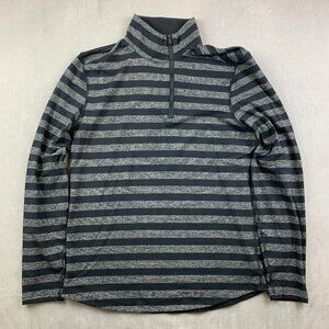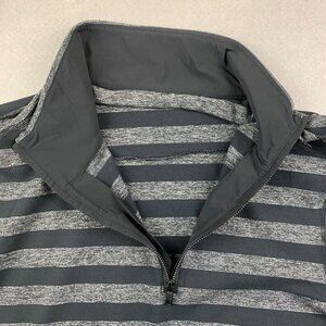 Lululemon Mens Pullover Large Black Gray Striped 1/4 Zip Lightweight Performance