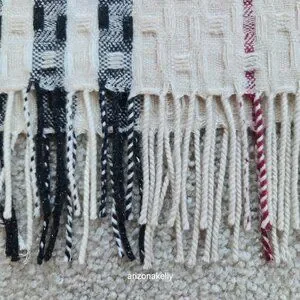 Beautiful and rare Burberry scarf woven in merino wool and cashmere. In very good condition. If you look closely at the weave of the scarf, you'll see it's layered, and the top layer adds texture and detail. However, these fine upper strands are prone to breakage and there are a few that are broken, as you can see in the pictures. It's just the nature of a scarf like this, but you would only notice it if looking closely. It really is a gorgeous scarf and the minor issues don't detract from its beauty.