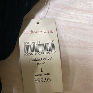 Coldwater Creek Black Crinkle Velvet Tunic Size L (14-16) Pockets NWT