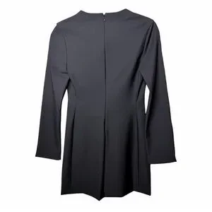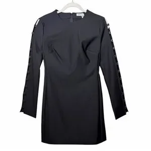 This chic black dress features stylish long sleeves with eye-catching cut-out details. Perfect for any occasion, it offers a sleek and modern look.