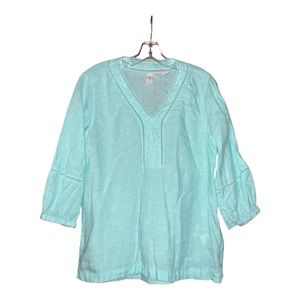 Joie Women’s Medium Tunic Top Blouse Pullover 100% Linen Light Turquoise