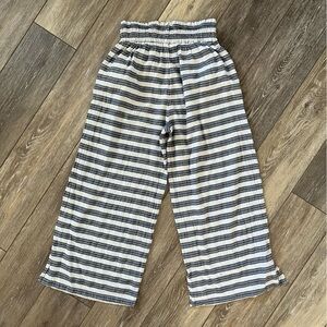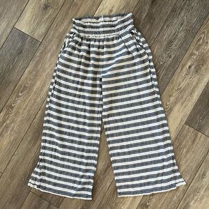 Beautiful linen pants with muted blue and white stripes. Stretchy waistband and two front pockets. So comfortable!