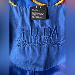 Fuda 100% silk bomber jacket nautical ropes and lifesavers. Yachtwear. Vintage. says small, but these 80s things fit a little larger.