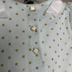 Mint green gold polka dot scalloped edges with white bows on shoulders