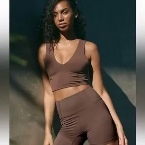 Free People Better Better Crop Brown V-Neck Top Tank Bra