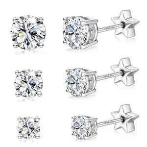 Versatile Moissanite Earrings Set : The earring set includes 3 pairs of flat back stud earrings in 3/4/5 mm sizes, featuring brilliant D color, VVS1 clarity Moissanite. These Moissanite diamonds earrings come with a GRA certificate, ensuring authenticity, and passes the tester.