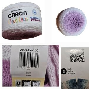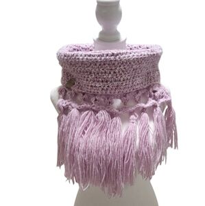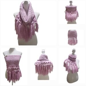 Hand Crafted Stay Cozy and Stylish with Our Handmade 10-way hand knit Crochet Infinity Scarf & pom pom beanie made with Yarnspiration Caron Cloud Cupcakes color Orchid which is a combination of soft purples, soft pink, white, and lavander