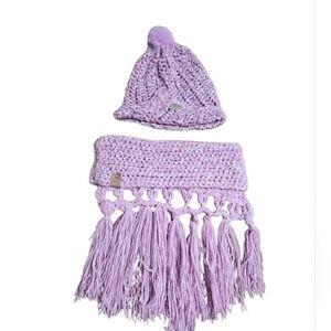 Hand Crafted Crochet 2-piece Set Fringe Scarf & Winter beanie Purple chunky knit