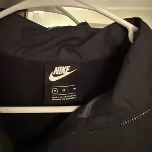 Sleek black Nike windbreaker. Lightweight and stylish. Perfect for outdoor activities.