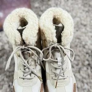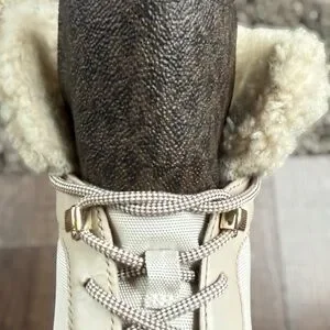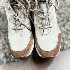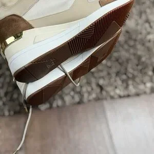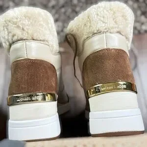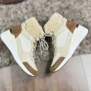 MICHAEL KORS Liv Cream and Brown High-Top Sneakers Size 8 Women