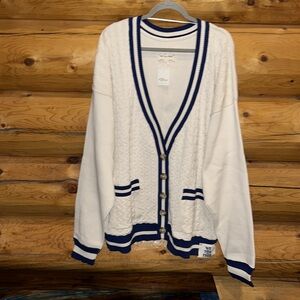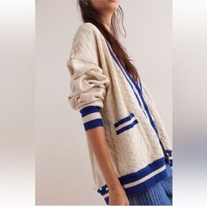 Free People Cream and Blue Cardigan