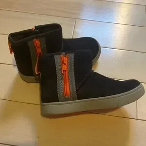 UGG kids boots with bold black and orange accents. Easy zip closure. Ideal for daily adventures.