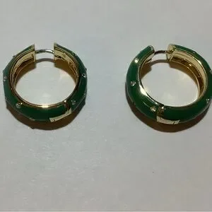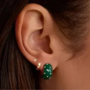 Green enamel and white CZ create a stunning seasonal tone with a hint of shimmer. These chic huggies are perfect for adding a playful, holiday party ready twist to your look.