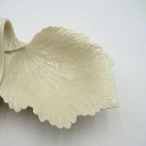 Lenox Bowl Candy Dish Cream Leaf Shaped Ceramic Divided Made in USA