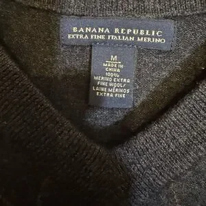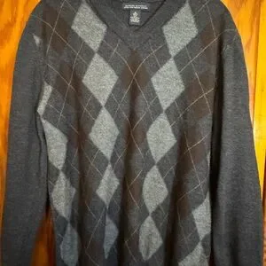 Banana Republic V-Neck Argyle Sweater - Dark Gray and Light Gray