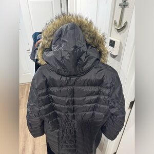 Stay warm and stylish with this black puffer coat featuring a cozy faux fur hood. Perfect for chilly days. a little too small for me so reposhing