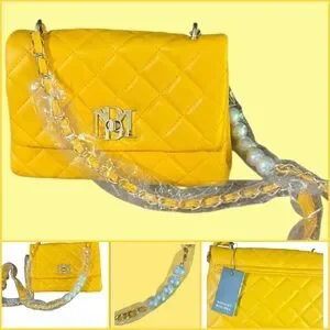 Badgley Mischka Quilted Yellow Shoulder Bag, 8"L x 6"H x 2", Chain Strap, NEW